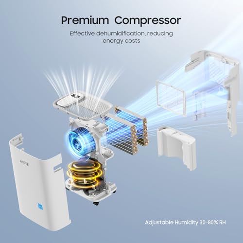 Stay dry and comfortable with the ANDTE 52 Pint Energy Star Dehumidifier. Designed for large spaces up to 4500 sq.ft, this powerful dehumidifier removes up to 52 pints of moisture per day at 95°F and 90% RH, making it ideal for basements, bathrooms, bedrooms, living rooms, kitchens, cellars, or crawlspaces.