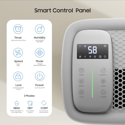 ✅ Smart Modes: Choose from DEHU (precise humidity control), DRY (fast drying), or CONT (continuous operation) modes for tailored performance