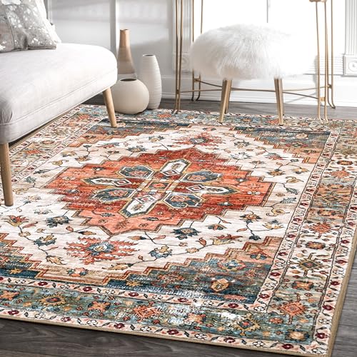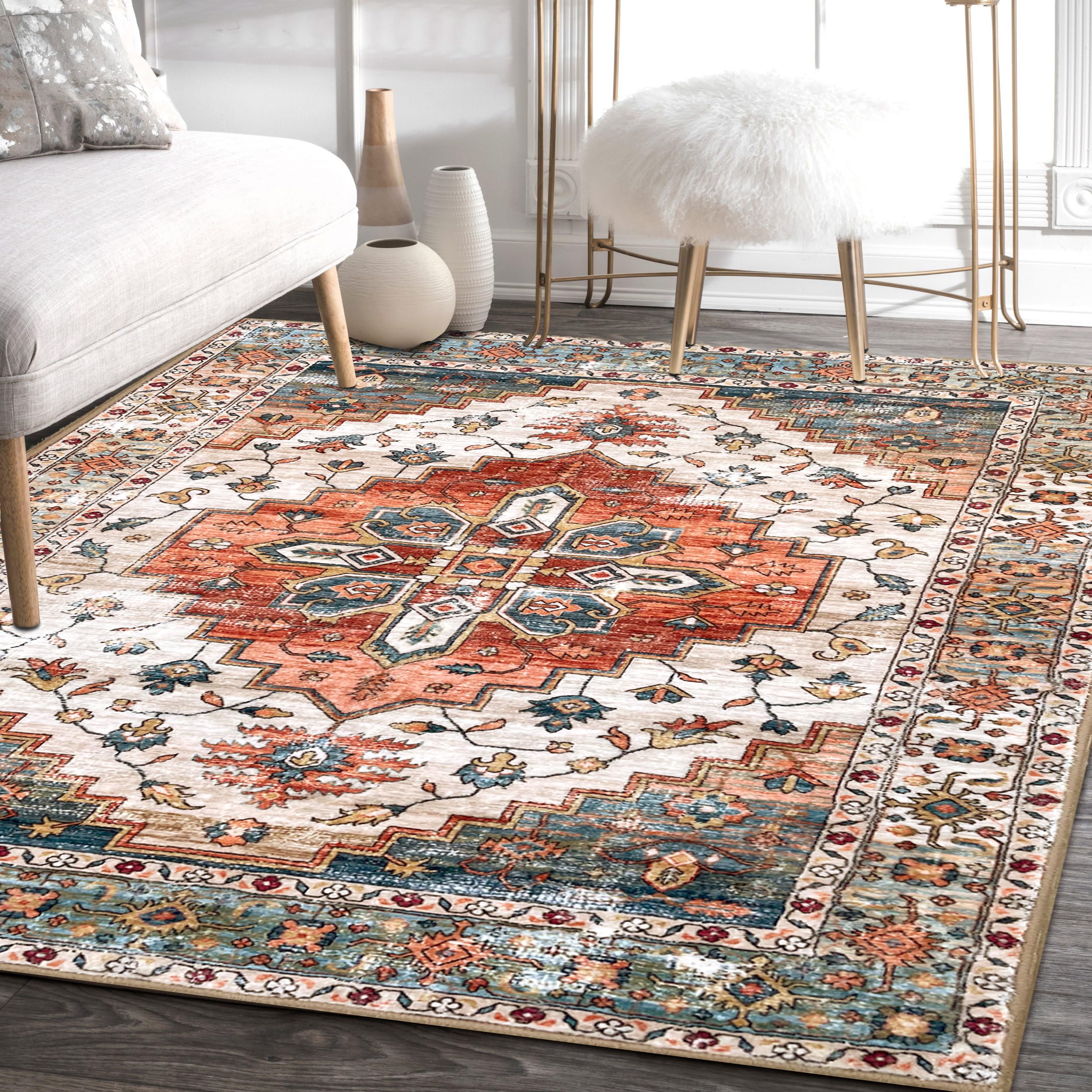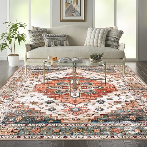 Aopota Washable Area Rug - 8x10, Low Pile, Distressed Boho