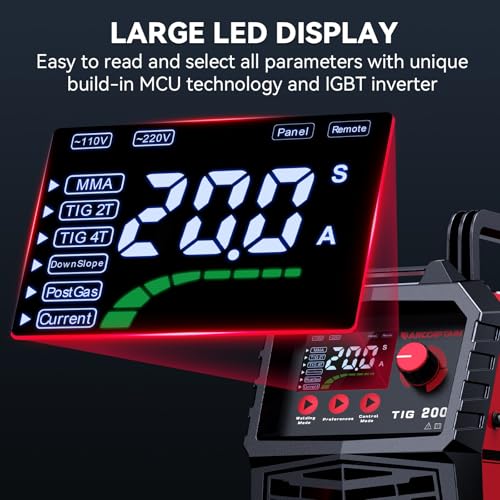 Weld with precision and versatility using the ARCCAPTAIN TIG Welder 200A. This dual voltage (110V/220V) welding machine offers TIG, Stick, and Arc welding in one compact unit, making it ideal for both indoor and outdoor applications. The high-frequency arc starting technology ensures easy ignition without damaging tungsten or the material, while advanced MCU and IGBT Inverter technology deliver flawless welds with minimal spatter and cleanup.