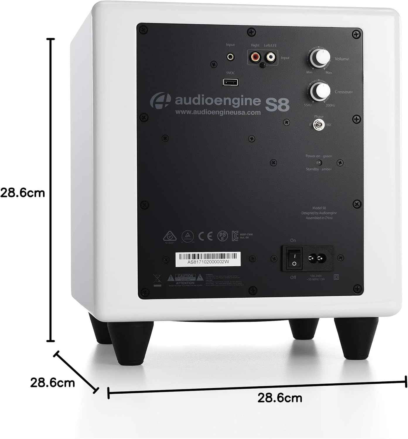 Audioengine S8 Powered Home Subwoofer Speaker - Caisson de Dasses - 250W 8-inch Subwoofer with Built-in Amplifier for Home Audio