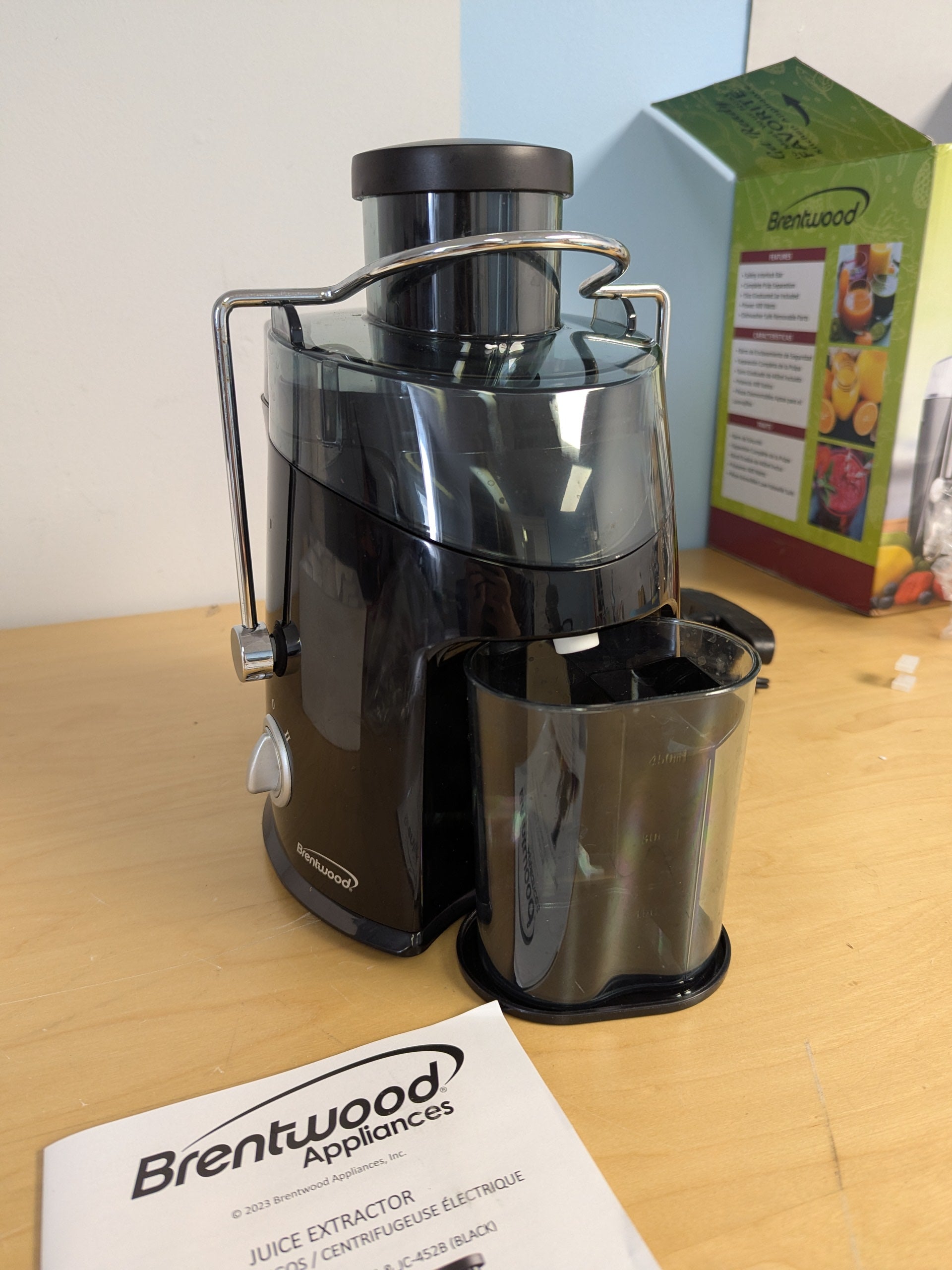 Extract fresh juice from a variety of fruits, vegetables, leafy greens, and herbs with the Brentwood JC-452B Juice Extractor. Its powerful blades efficiently pulverize ingredients to create nutrient-rich juice, while the wide feeder allows for whole produce to be processed effortlessly.