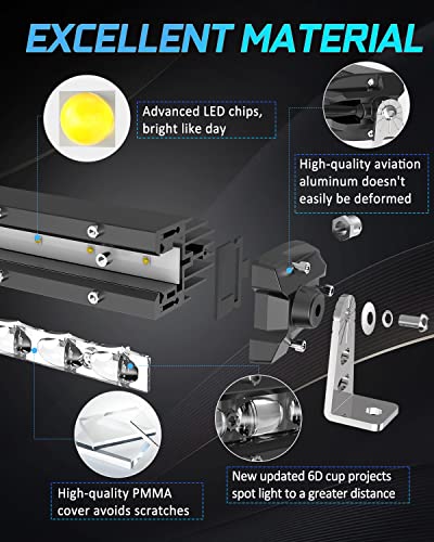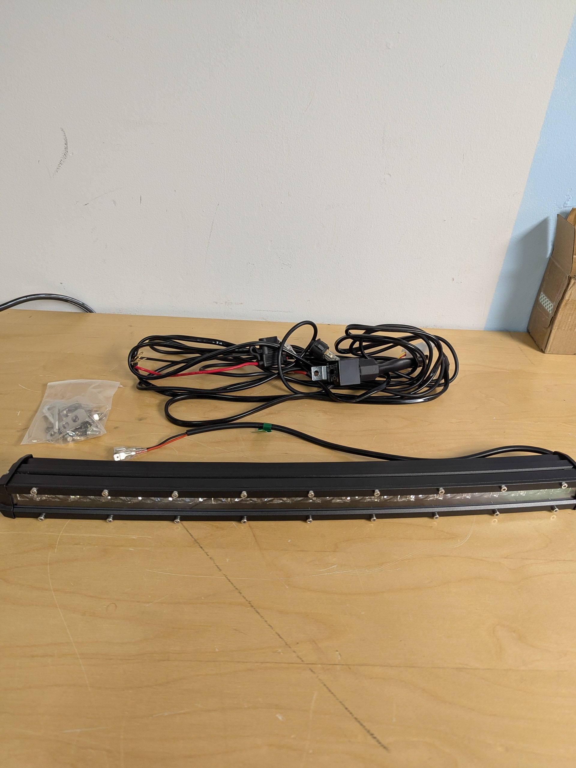 • Included Components: 20-inch LED light bar, mounting brackets, user manual, wiring harness, and switch