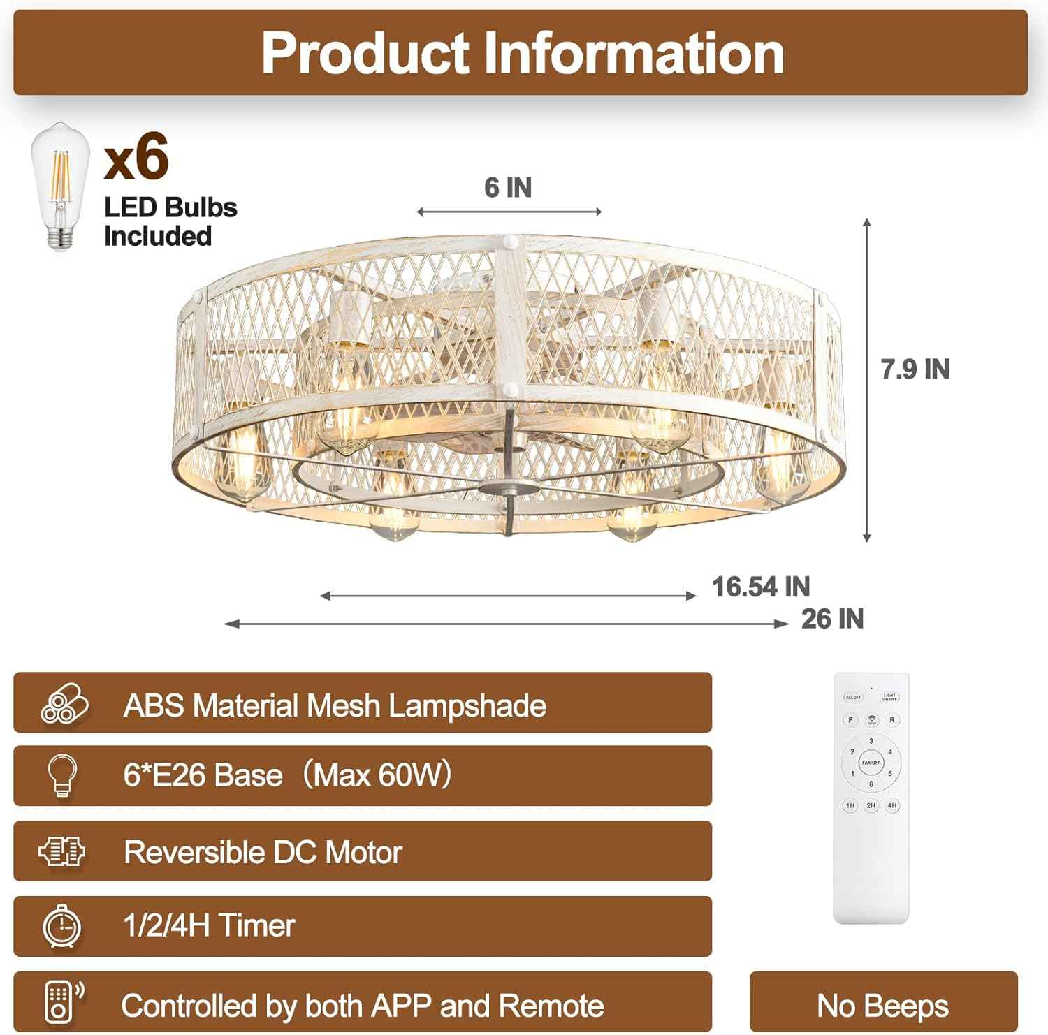 ✅ Dual Control Options: Operate via remote or app (no beep on remote) with 6 speed settings, reversible function, and timer settings