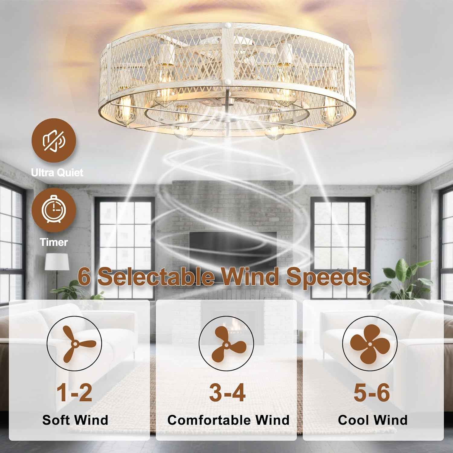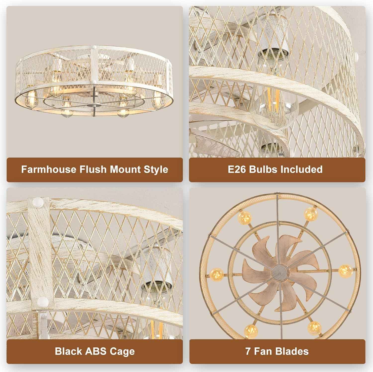 Enhance your space with the Depuley Flush Mount Ceiling Fan in Cement White. This 26-inch low-profile ceiling fan features an ABS farmhouse caged design that combines style with functionality, offering efficient air circulation in a compact form. Ideal for bedrooms, kitchens, living rooms, and covered outdoor areas.
