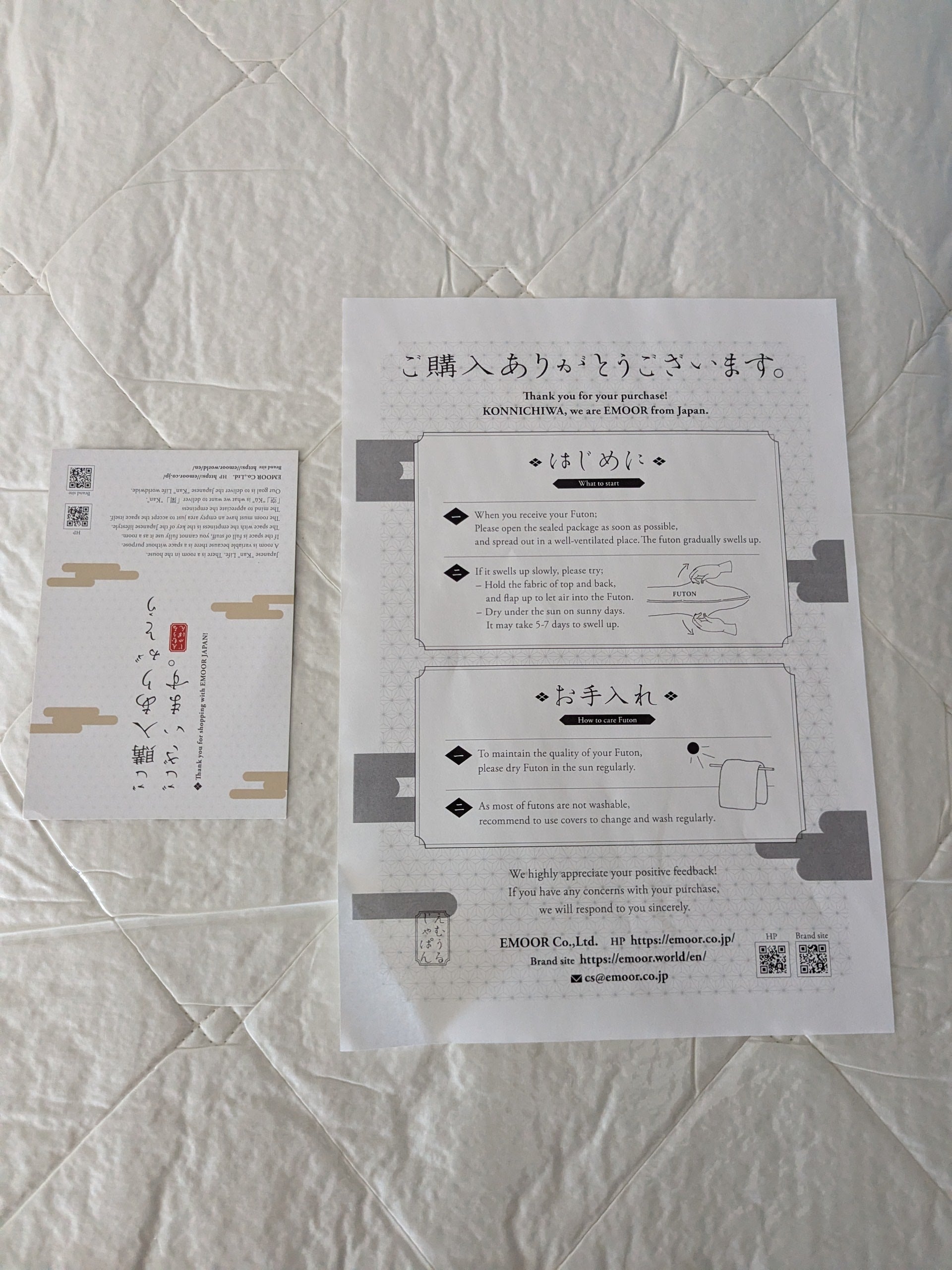• Dimensions: 39" x 79" x 2.5" (Futon Mattress), 39" x 79" x 0.4" (Tatami Mat)
