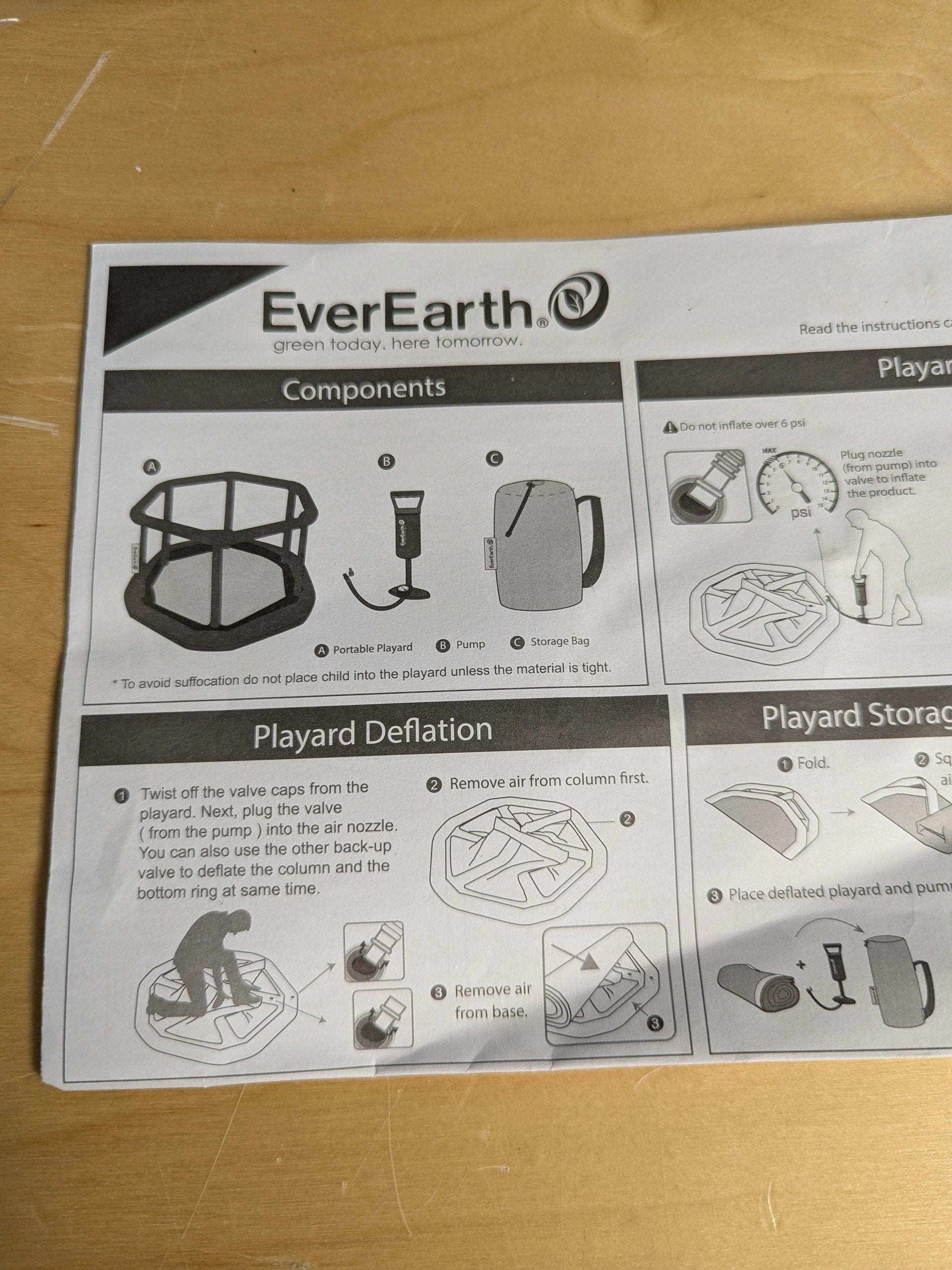 • Included: 1 inflatable play yard, 1 manual pump, 1 carry strap