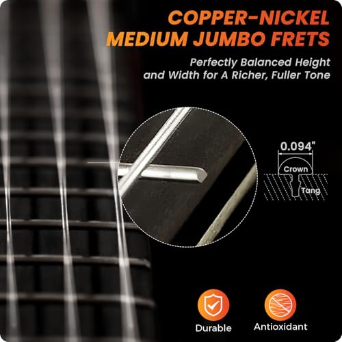 ✅ Smooth Playability: C-shaped maple neck with purpleheart fretboard, 25.5" scale length, 15.75" radius, and medium jumbo frets (0.094") offer responsive, comfortable play