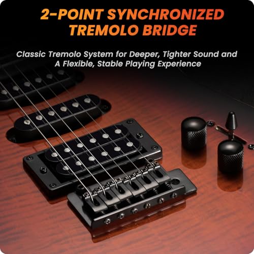 ✅ Stable Tuning System: High-precision sealed tuning machines with 1:18 gear ratio ensure solid tuning stability. 2-point tremolo bridge allows expressive vibrato without tuning issues