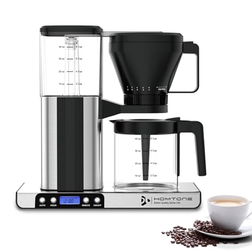 Brew the perfect cup with the Homtone 8 Cup Coffee Maker – a programmable drip coffee machine designed to meet SCA standards. This sleek black coffee maker delivers consistent brewing temperature (195-205°F) for optimal extraction, ensuring rich and aromatic coffee every time.