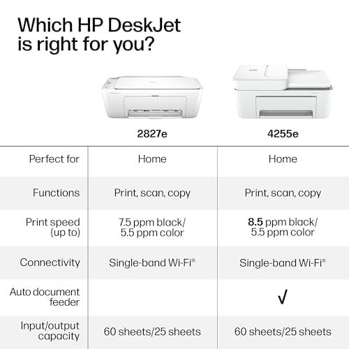 The HP DeskJet 2827e Wireless All-in-One Color Printer is a compact, efficient solution for home printing needs. This all-in-one device offers print, copy, and scan capabilities with speeds up to 7.5 ppm in black and 5.5 ppm in color. Featuring a 60-sheet input tray, it supports wireless printing via Wi-Fi and direct printing, along with USB connectivity for easy setup. It also includes Apple AirPrint and Google Cloud Print compatibility, making it versatile for various devices.