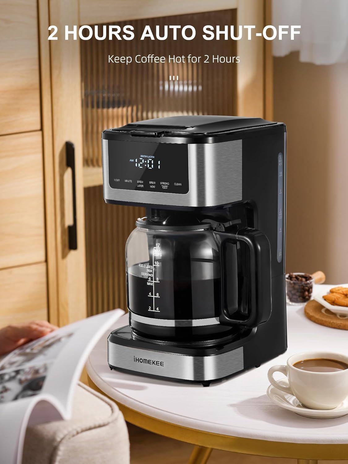 Brew rich, customizable coffee with the Ihomekee Drip Coffee Maker. Designed for both home and office use, this 12-cup machine offers a convenient solution for everyday coffee needs.