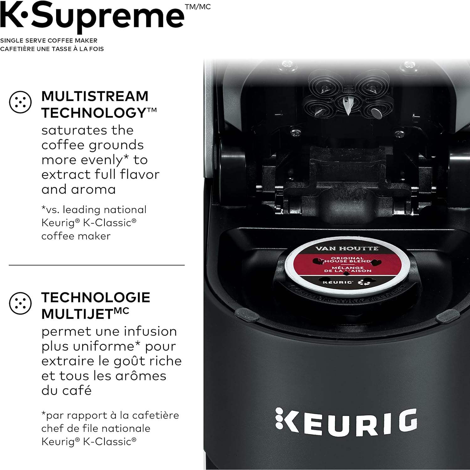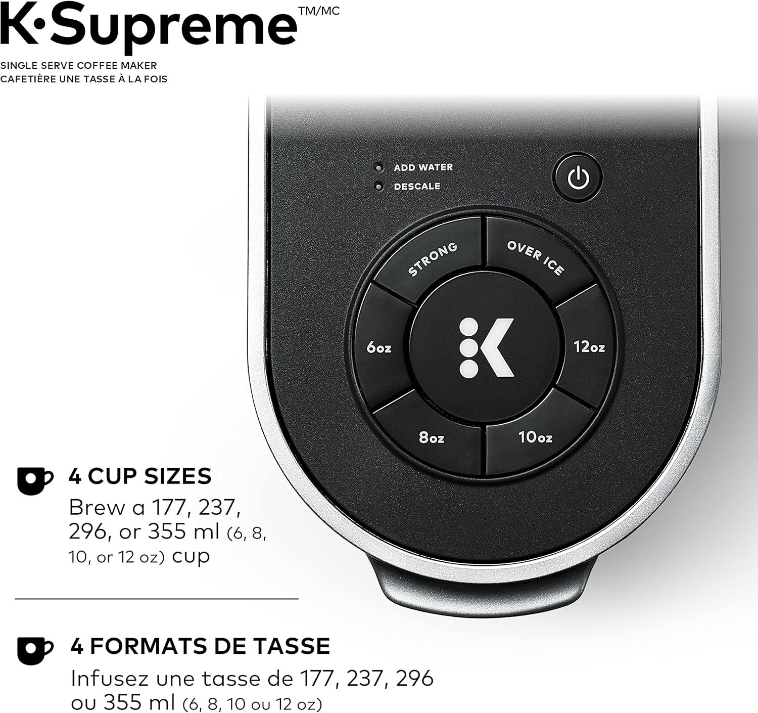 Enjoy a fast, fresh, and customizable coffee experience with the Keurig K-Supreme Single Serve Coffee Maker. Designed for convenience and versatility, this compact machine uses MultiStream Technology to evenly saturate coffee grounds, unlocking full flavor and aroma in every brew. Brew your favorite coffee, tea, or cocoa in 177, 237, 296, or 355 ml (6, 8, 10, or 12 oz) sizes—whether you want a stronger cup or a refreshing iced coffee.