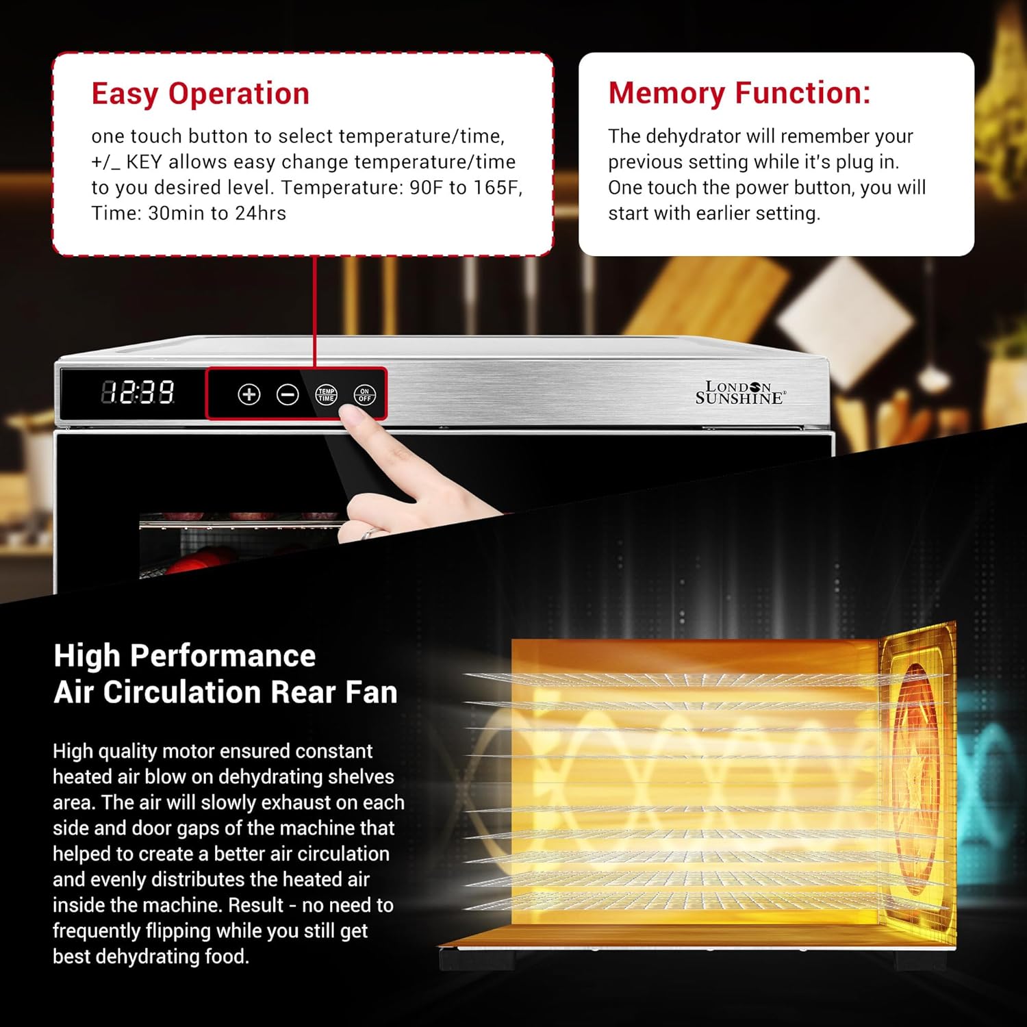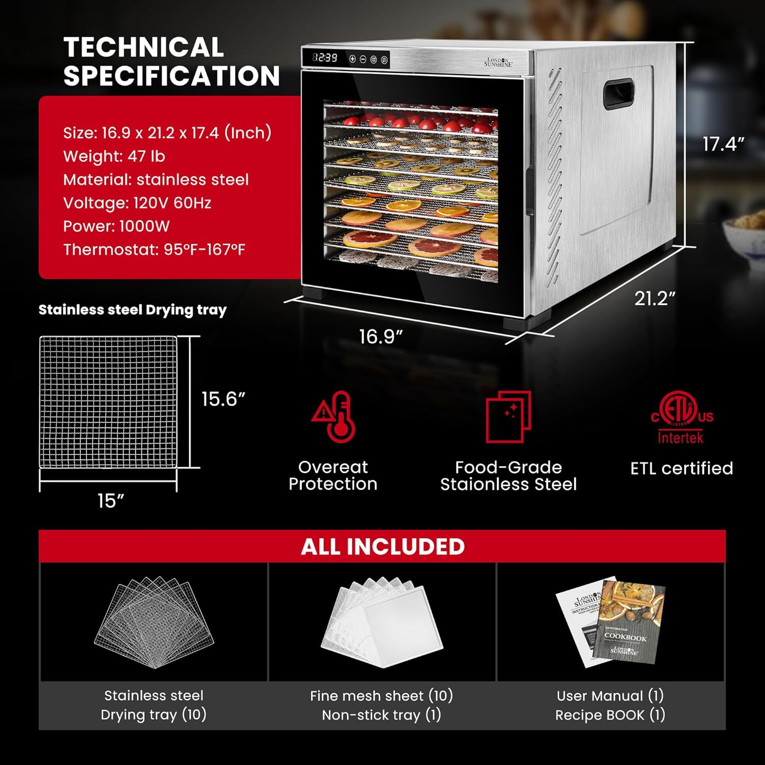 London Sunshine® Commercial Grade Food Dehydrator - Double Wall Stainless Steel