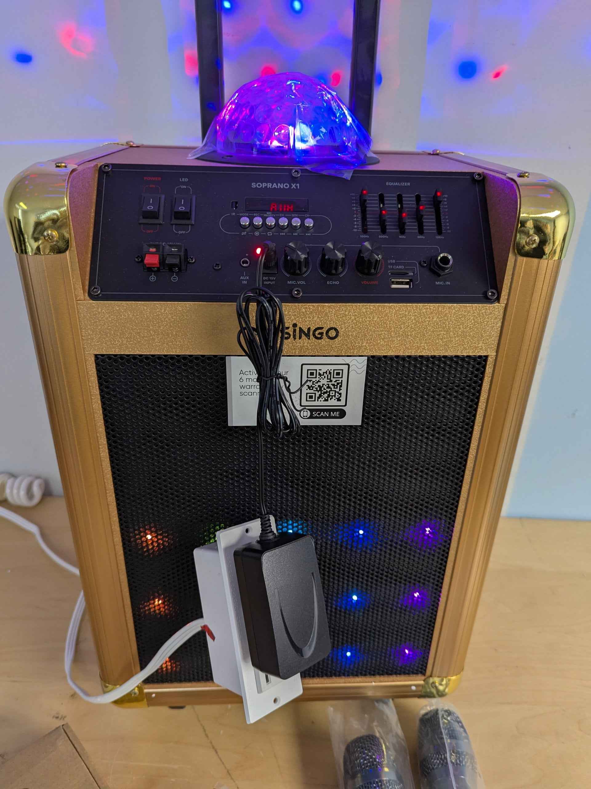 âś… Smart Display & Lighting: Individual microphone displays for volume and EQ control, plus LED disco ball for vibrant ambiance