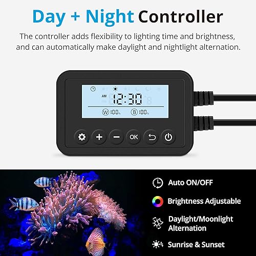 ✅ Dual-Channel Timer Included: Simulates natural sunrise and sunset with adjustable light intensity for optimal coral growth