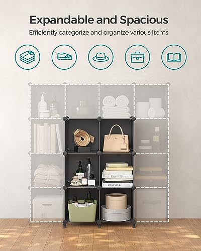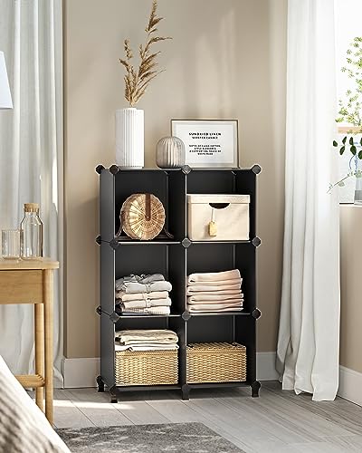 Transform your storage space with the SONGMICS 6 Cube Storage Organizer. This modular system features a durable steel frame paired with strong PP plastic panels connected by sturdy ABS connectors, allowing each cube to support up to 22 lb. The anti-tip kit ensures stability and safety.