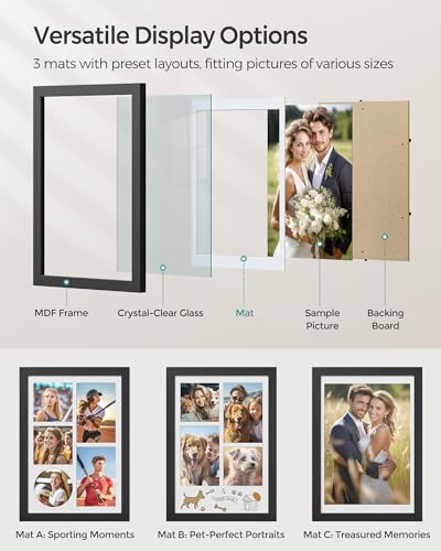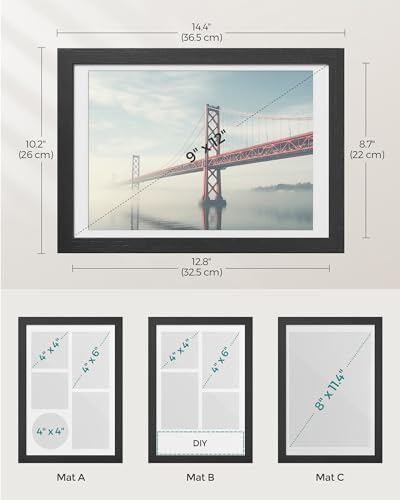 Elevate your decor with the SONGMICS A4 Picture Frames Collage, a versatile wall-mounted frame designed to showcase multiple photos and more. This 14.4”x10.2”x0.6” collage picture frame effortlessly accommodates A4, 4x6, 8.5x11, 8x12, 9x12, or 4x4 photo sizes, making it perfect for displaying your cherished memories in one elegant display.