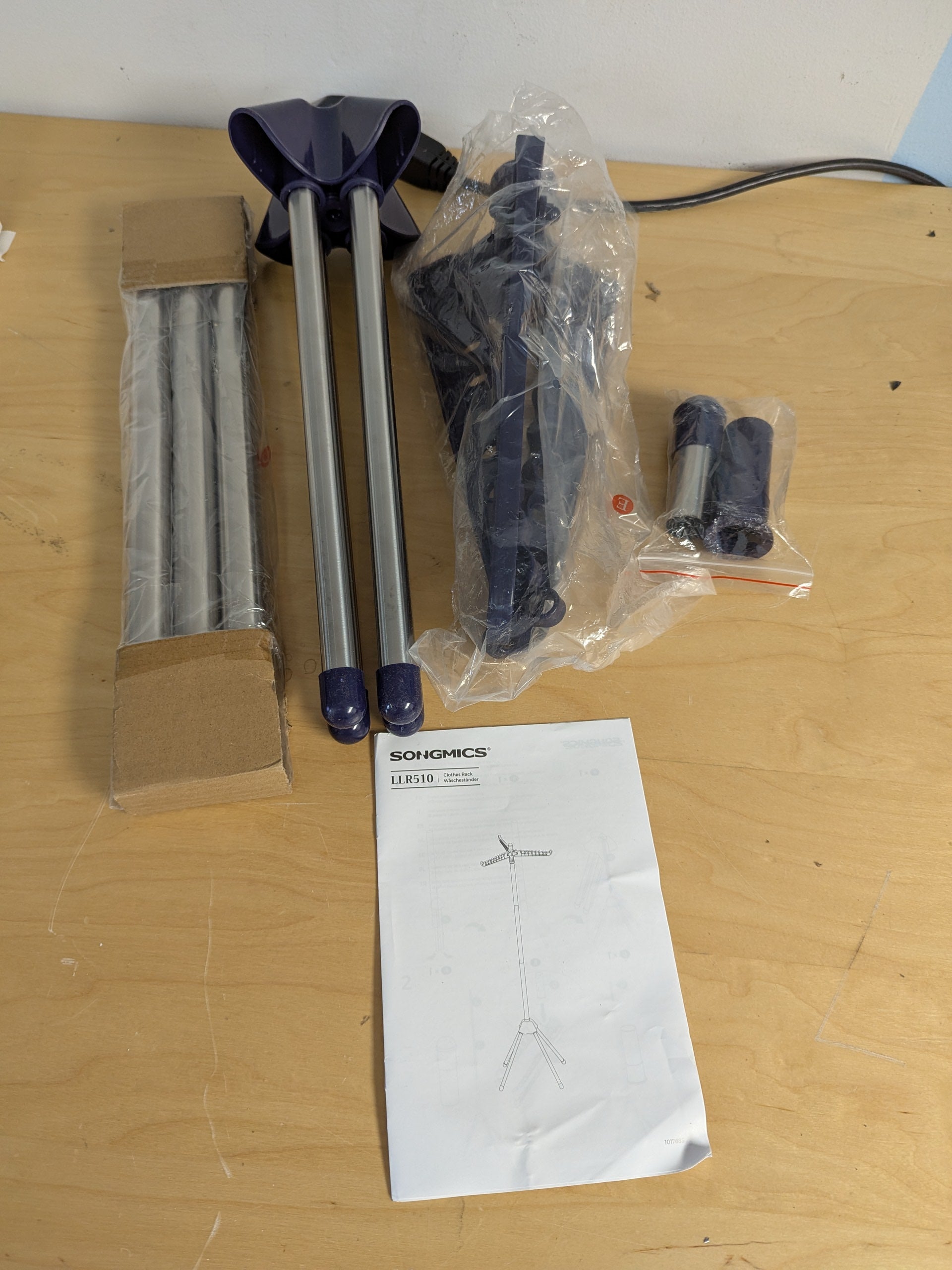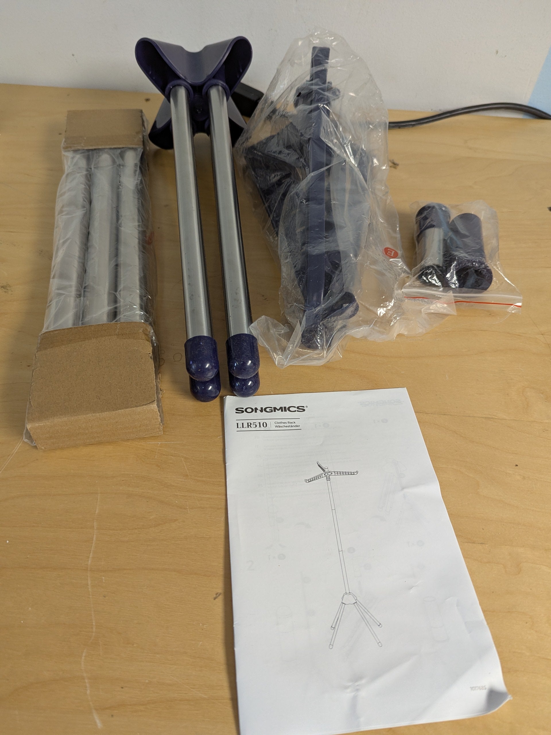 Stay organized and efficient with the SONGMICS Clothes Drying Rack, a durable and space-saving solution for drying multiple garments. Standing at 25.6"D x 25.6"W x 59"H during use, this folding laundry rack is ideal for small spaces. Its 3 rotatable arms allow easy access to clothes from all sides, while the stainless steel construction ensures rust resistance and sturdiness. With 4 legs for added stability, it can hold up to 27 pieces of clothing, thanks to reinforced holes designed to secure hangers in place.
