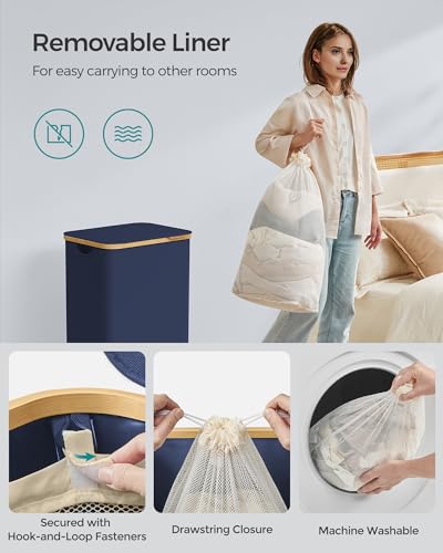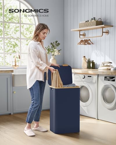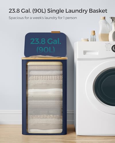 Home organization just got easier with the SONGMICS Laundry Hamper with Lid. This spacious 23.8-gallon (90L) laundry basket measures 16.5"L x 12.6"W x 27.8"H, offering ample room for a week's worth of laundry for one person.