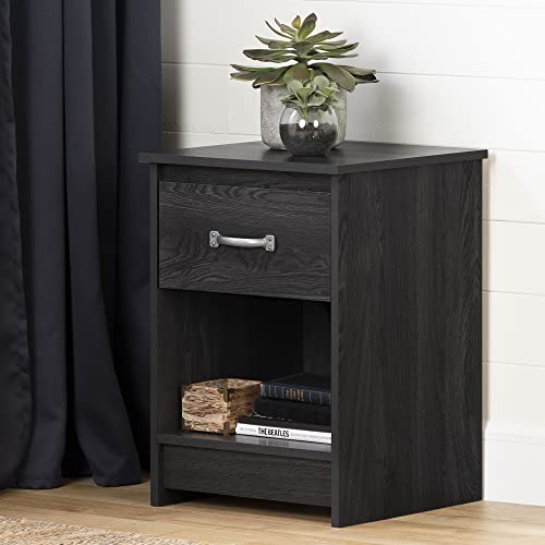 South Shore Furniture Tassio 1-Drawer Nightstand Gray Oak, Farmhouse