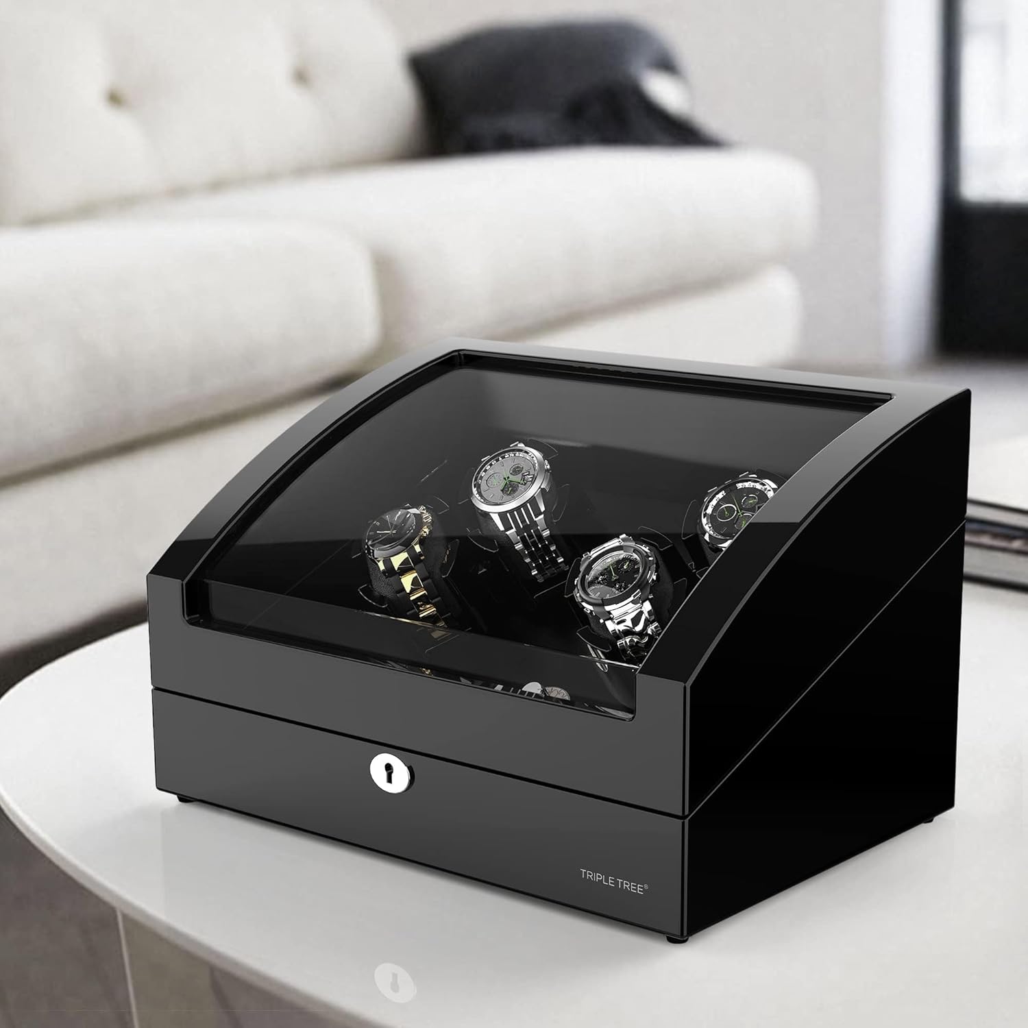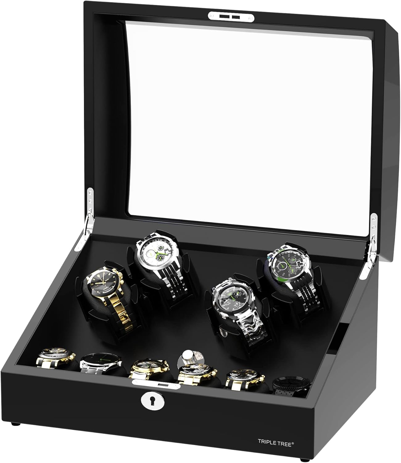 Elevate your watch collection with the TRIPLE TREE Automatic Watch Winder, featuring a sophisticated wood and piano paint exterior that blends elegance with functionality. Designed to house up to 10 automatic watches, this winder offers 4 winding spaces and 6 additional storage compartments, making it ideal for collectors or those planning to expand their collection.